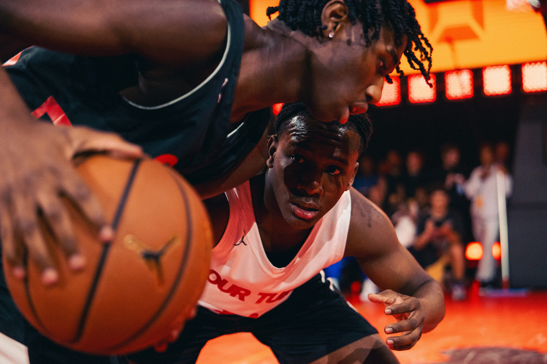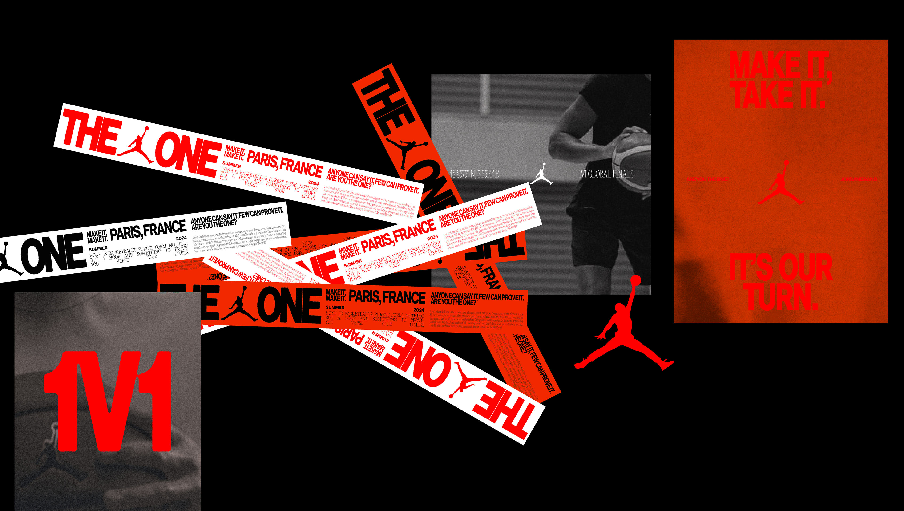 As Jordan Brand launched a new consumer proposition, Our Turn, it was critical to provide an opportunity for consumers to take their turn. We were inspired by Michael Jordan's daily 1-v-1 battles with his brother Larry in their backyard. We recreated this backyard scenario on a global scale—searching for the best unknown 1-v-1 players, ages 15–18, from around the world. This culminated at District 23 in Paris on 7.26.24, live-streamed on Twitch to a global audience—for a chance to earn a one-year partnership with Jordan Brand.