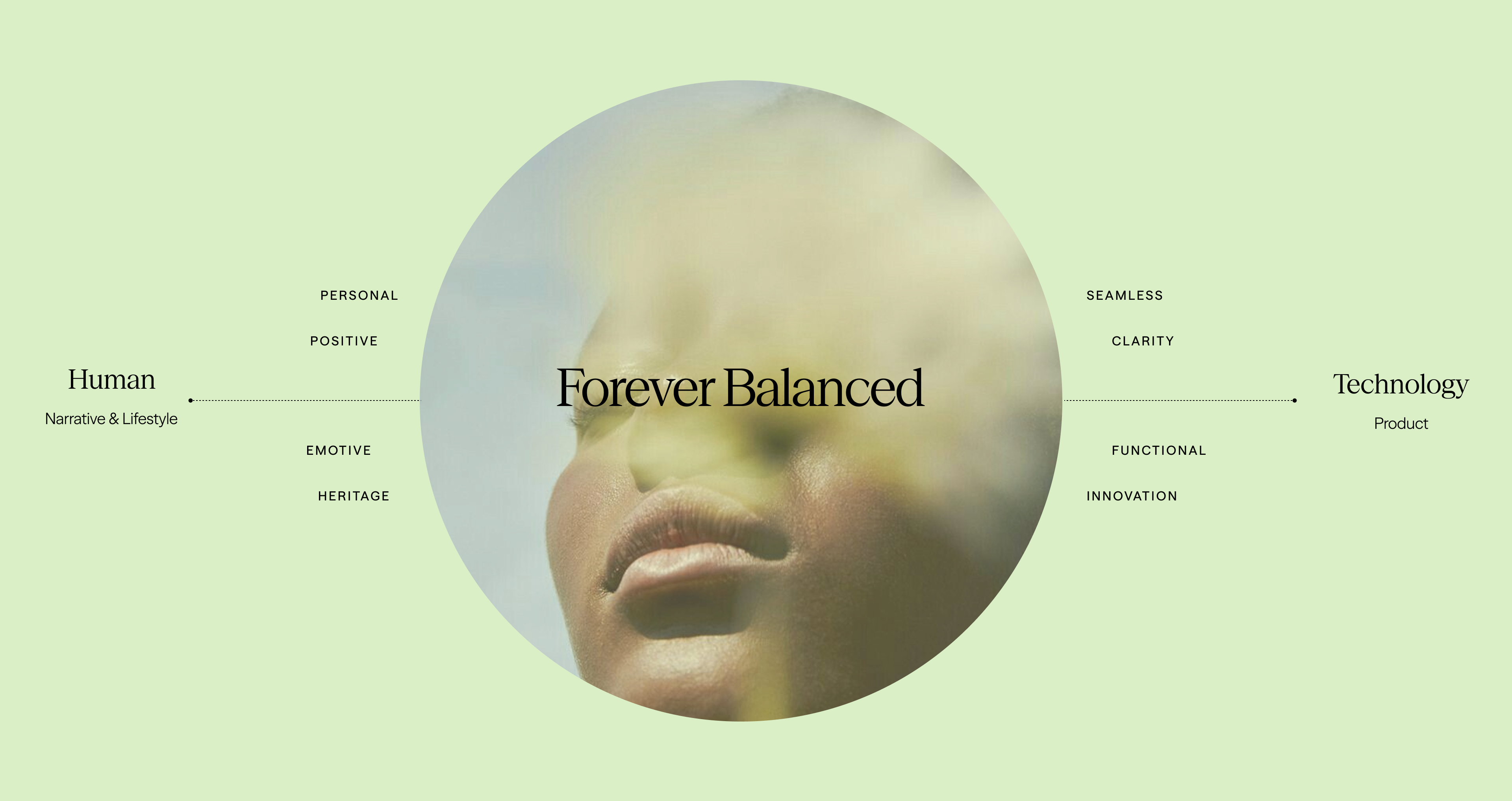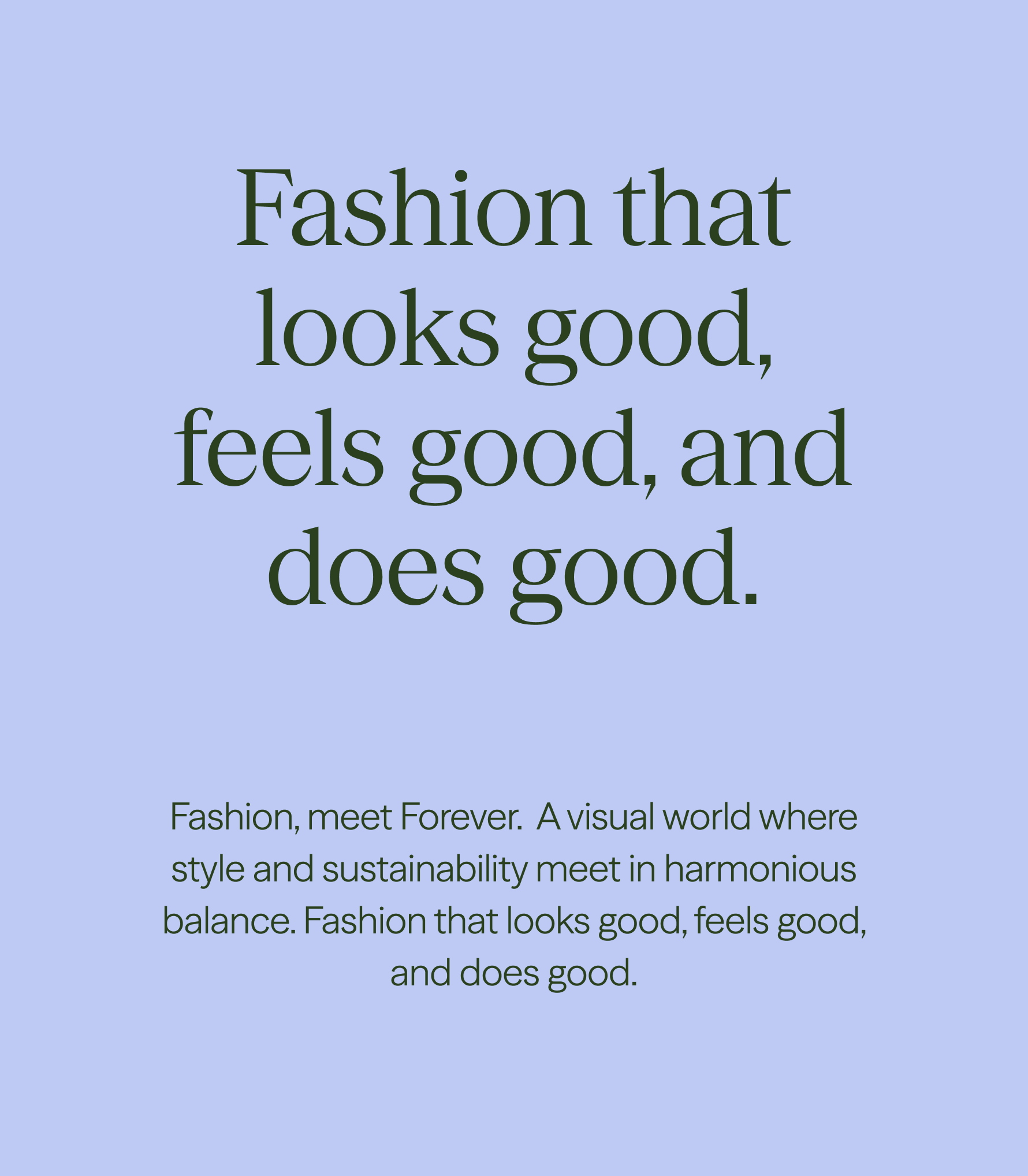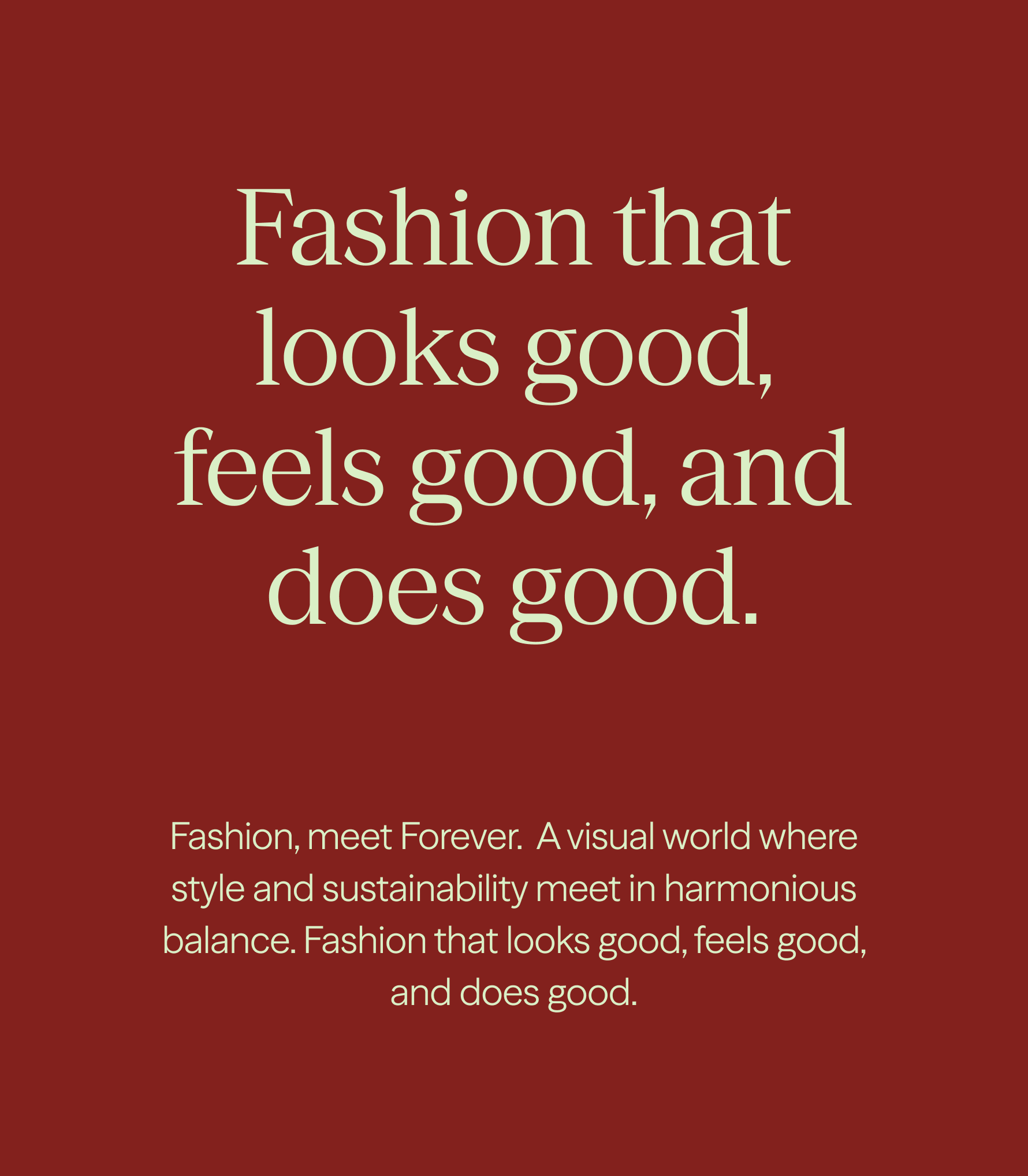 Using the creative core of "Forever Balanced", we developed a visual world where style and sustainability meet in harmonious balance. Fashion that looks good, feels good, and does good. Sustainability that engages the evenly balanced, endless nature of circularity. It’s a brand expression that embodies the confident, human, and intentional, alongside exploration, technology, and ease.